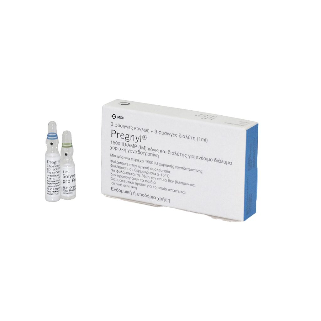 Pregnyl 1500 IU MSD — human chorionic gonadotropin from MSD at 1500 iu. LH-mimetic: directly stimulates leydig-cell testosterone production and spermatogenesis. On-cycle testicular maintenance or pre-PCT priming.